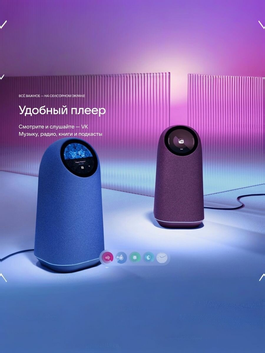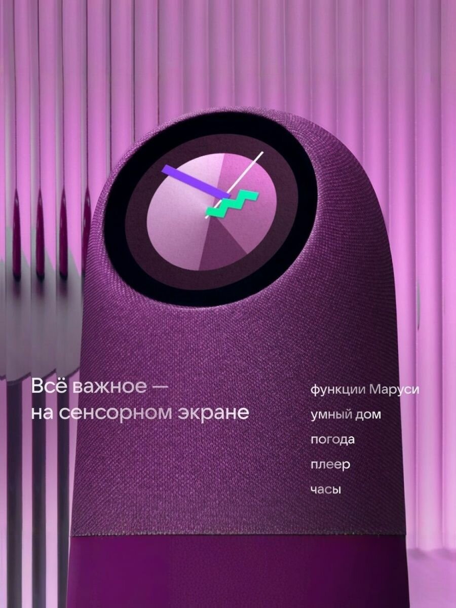 Новинка! Познакомьтесь с умной колонкой VK Капсула Про – вашим новым помощником в мире музыки и технологий. Акустическая система с технологией пространственного звучания — это три динамика общей мощностью 65 Вт и звук, который погружает в музыку. Смелый дизайн создан Каримом Рашидом — его работы украшают лучшие музеи мира. Сенсорный экран показывает музыку в удобном плеере, погоду, функции Маруси, данные умного дома. Циферблат можно менять одним движением — под интерьер или по настроению. Умный дом в колонке. Встроенный Zigbee-хаб объединит умные устройства от 70+ брендов, чтобы вы управляли ими голосом. А встроенные датчики влажности, температуры, движения и освещённости выведут домашний комфорт на новый уровень. Дружелюбный голосовой помощник Маруся поможет с делами и отдыхом. Теперь Маруся усилена нейросетями от VK! Она ещё лучше отвечает на вопросы: изучает надёжные источники, выделяет главное и даёт полный, но ёмкий ответ. С элегантным дизайном в цвете Бургунди, эта колонка не только украсит ваш интерьер, но и станет центром домашней развлекательной системы. Особенность модели – встроенный голосовой помощник Маруся, который мгновенно откликнется на ваши команды и выполнит разнообразные задачи, от воспроизведения музыки до управления умным домом. Умная колонка предлагает продвинутые функции для наслаждения любимыми композициями, а поддержка подписки VK позволяет вам получить доступ к огромной библиотеке музыки. Важно отметить, что при покупке устройства вы также получите три месяца бесплатной подписки на Wink, что откроет для вас новые горизонты в мире развлечений и умного дома. Пользуйтесь простотой управления: командуйте голосом и наслаждайтесь бесконтактным взаимодействием с устройством. Проводите время с пользой и наслаждайтесь любимыми звуками, не вставая с места. Открывайте новые функции и возможности с VK Капсула Про, которая станет незаменимым элементом вашего досуга.