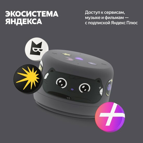| Дополнительная информация | LED-экран в версии с часами: 32 светодиода белого цвета (4 цифры по 7 сегментов + 4 служебных символа); 3 сенсорные кнопки, разъём питания (DC jack) 4 мм; комплектация: Яндекс Станция Мини, адаптер питания, кабель питания, документация, набор наклеек; при покупке с полной оплатой в подарок 1 месяц подписки Яндекс.Плюс; радиус действия Bluetooth: до 10 м; аудиовход: 3.5 мм jack; напряжение: 100-240 В |