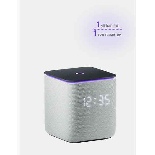 Умная колонка выполнена в сером цвете, что делает ее стильной и современной. Она легко впишется в любой интерьер и станет его ярким акцентом.
