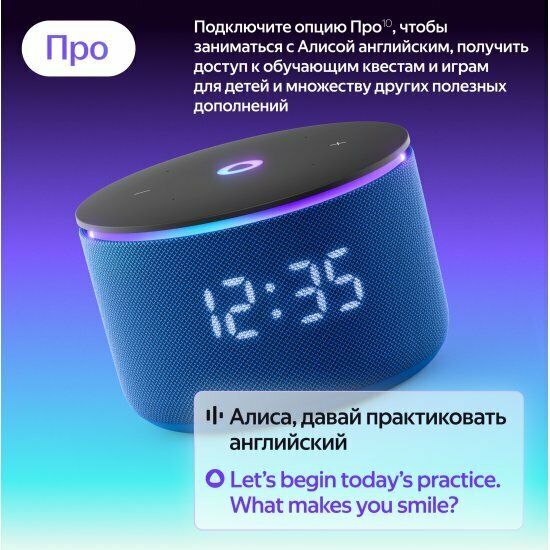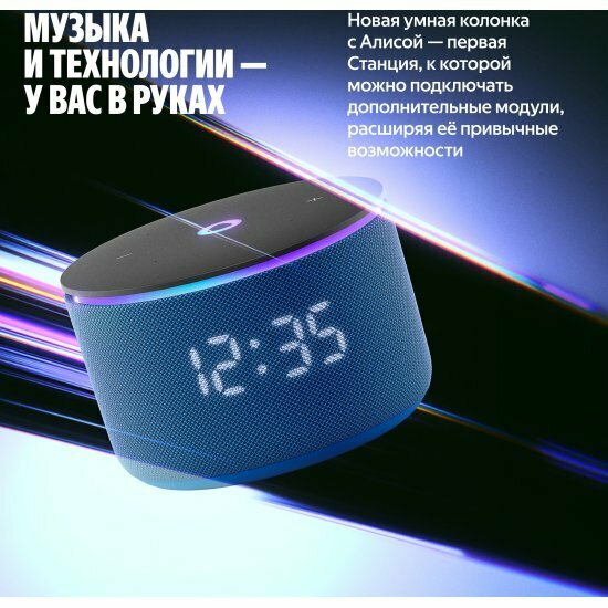 Яндекс Станция Мини 3 Про Первая умная колонка с Алисой, к которой можно подключать дополнительные модули, расширяя её привычные возможности. Слушайте музыку в классном качестве, носите Станцию с собой и превращайте в домашнюю климатическую систему. Ваш ассистент внутри Алиса с искусственным интеллектом в Станции Мини 3 Про умеет так много: Она найдёт и включит: музыку, аудиокниги, подкасты и подберёт рекомендации по вашим интересам. Задавайте вопросы: получайте понятные и подробные ответы. Несколько команд: можно давать одновременно, например: Алиса, включи плейлист для поднятия настроения и сделай звук на максимум. Много пространства для любимой музыки Технические решения Яндекса делают звук в Станции Мини 3 Про удивительно чистым и выразительным: Выразительное звучание: динамик в 18 Вт с неодимовым магнитом и двумя пассивными излучателями усиливает звук и воспроизводит басы от 90 Гц. Стереопара: объединяйте две Станции Мини 3 Про для объёмного звучания. Режим Мультирум: включайте музыку на всех Яндекс Станциях в доме одновременно. Дополните Станцию портативным аккумулятором - и носите её с собой. Заряда хватит на 7 часов непрерывного прослушивания музыки. Климатический модуль (скоро в продаже) Специальный климатический модуль превратит Станцию в систему, которая мониторит и регулирует уровень углекислого газа, температуры и влажности. Алиса пришлёт уведомление, если уровень углекислого газа превысит норму. Станция поддерживает протоколы Wi-Fi, Zigbee и Matter. Подключайте умные устройства и управляйте умным домом голосом. Анимированная LED-подсветка меняется в такт музыке и сопровождает общение с Алисой. Алиса будет передавать звуки из детской на телефон или другую Яндекс Станцию, чтобы вы могли услышать, когда ребёнок проснётся. Говорите с Алисой шёпотом, и она тоже понизит голос. На колонку можно звонить из приложений Дом с Алисой или с другой Станции. Передавайте сообщения на колонку из приложений Яндекса, и Алиса прочитает их своим голосом. , Подкатегория: Умные колонки, Модель: YNDX-00059, Минимальная воспроизводимая частота: 90 Гц, Максимальная воспроизводимая частота: 16000 Гц, Вид разъема: USB Type-C, Беспроводные интерфейсы: Bluetooth; Wi-Fi; ZigBee, Питание: от сети; от аккумулятора (приобретается отдельно), Расположение регуляторов звука: на верхней панели, Цвет: синий, Материал корпуса: пластик, Гарантийный срок: 1 год, Страна производства: Китай, Вес с упаковкой (кг): 0.44 кг, Комплектация: Яндекс Станция Мини 3 Про, адаптер питания, инструкция, Длина упаковки: 11, Высота упаковки: 8, Ширина упаковки: 11, Версия Bluetooth: 5.0, Мощность акустики: 18 Вт, Вес без упаковки (кг): 0.35 кг, Ширина предмета: 9 см, Высота предмета: 6.5 см, Тип дисплея/экрана: LED (светодиодный), Код производителя: YNDX-00059BLU, Глубина предмета: 9 см, Количество динамиков: 1 шт, Стандарт Wi-Fi: 802.11 b/g/n/ac, Микрофон: встроенный; 3 шт, Количество портов USB: 1 шт, Доп. опции умной колонки: встроенный хаб управления; голосовой помощник; Мультрум / Объединения в стереопару (TWS) / Часы, Объединение в стереопару (TWS): да, Бренд: Яндекс