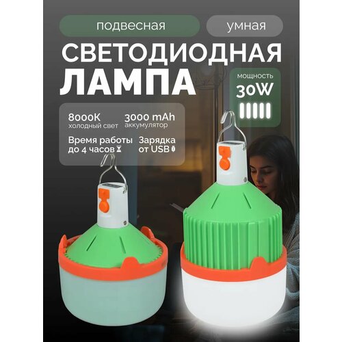 Аккумуляторная подвесная светодиодная лампа 30 Ватт - идеальный аксессуар для дачи и походов, который может использоваться в любых условиях. Фонарь кемпинговый подойдет для любителей активного отдыха на природе, туристов и путешественников. Он обеспечивает яркое и равномерное освещение, благодаря использованию светодиодов, при этом обладает длительным временем работы от встроенного аккумулятора.