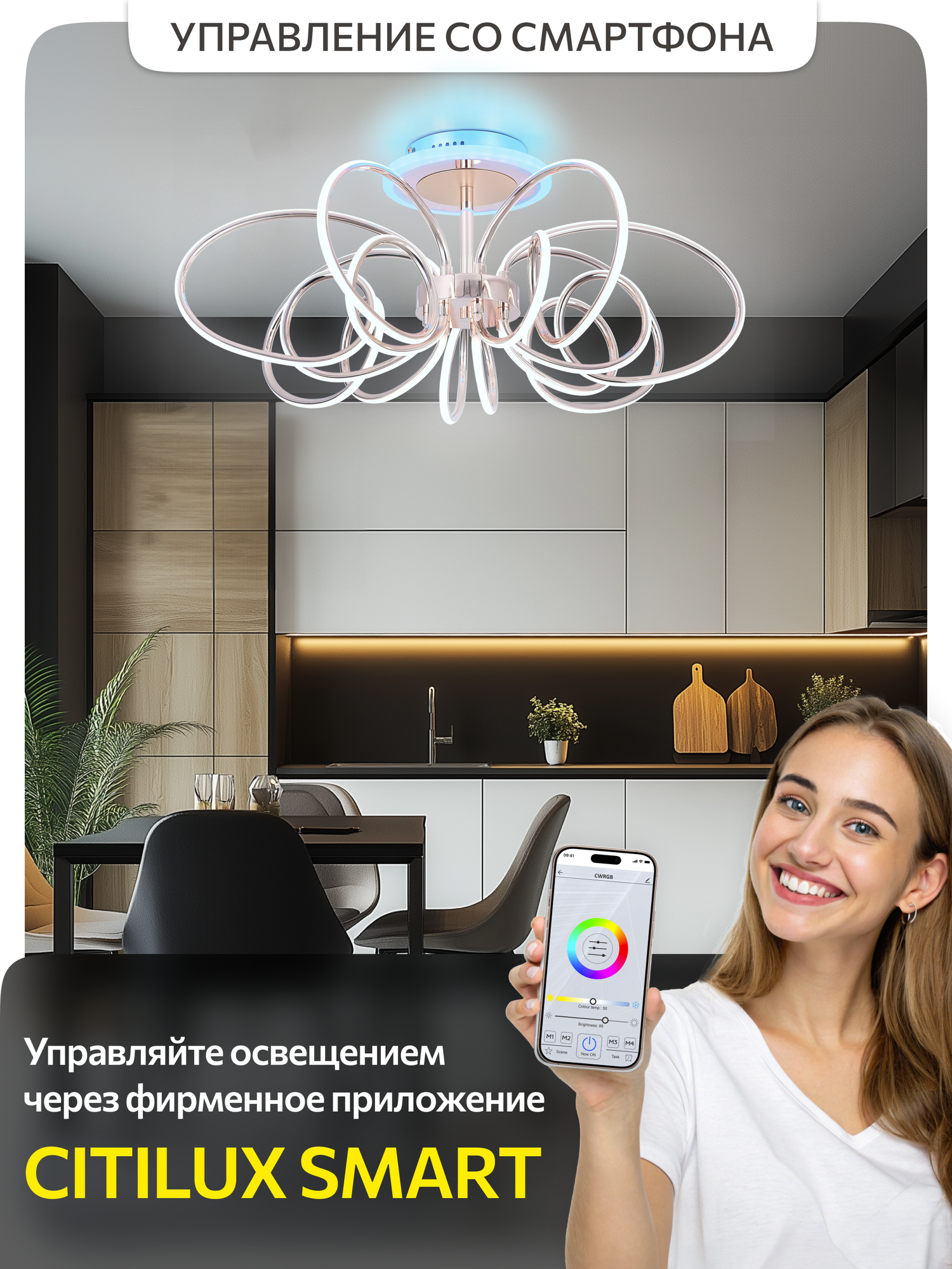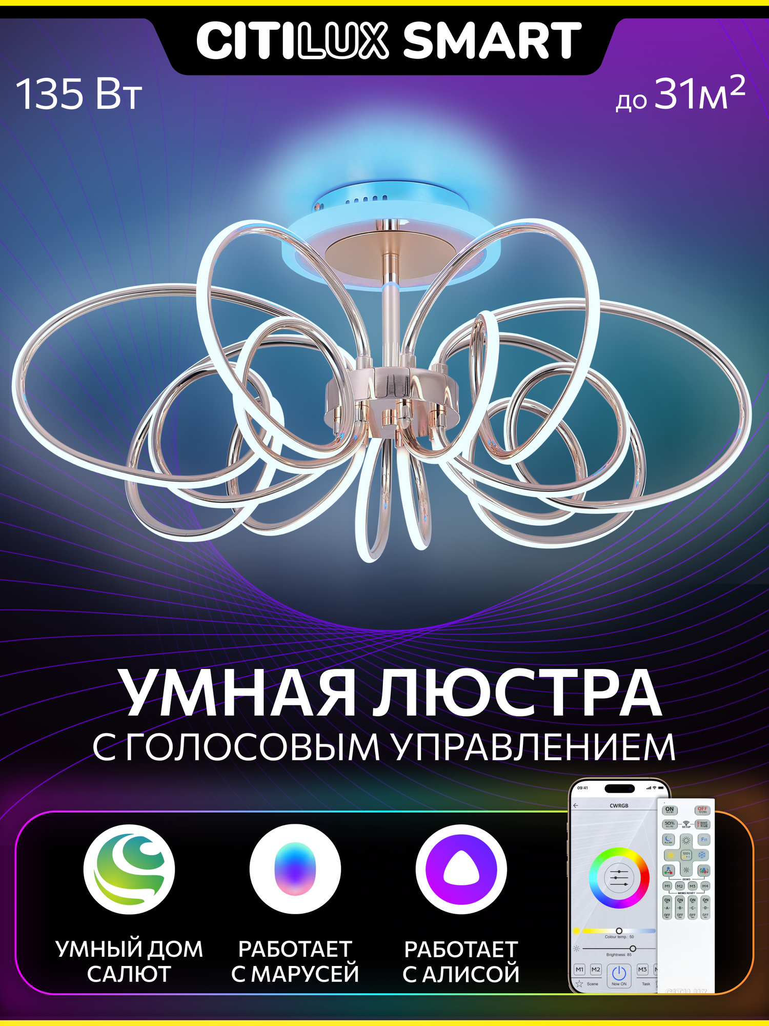 Умная люстра Citilux SALMA SMART CL224A171 RGB LED Хром: сравнение цен, характеристики, фото, актуальное наличие и цены.