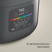 Ширина мультиварки всего 34 см, а в высоту даже меньше, поэтому она легко впишется в интерьер небольшой кухни. При этом объем чаши 5 литров — она подойдет большой семье и тем, у кого часто бывают гости. В чаше удобно готовить на несколько дней, она подходит и для хранения готовой еды в холодильнике.
