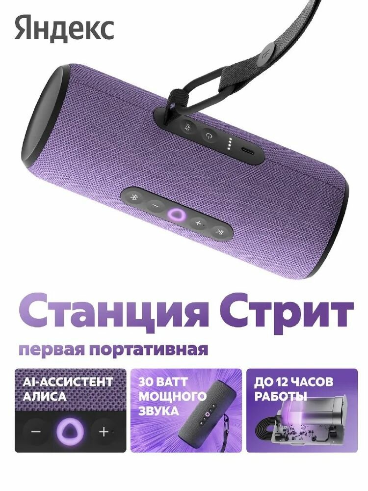 Яндекс Станция Стрит — первая портативная станция Яндекса с мощным звучанием, AI-ассистентом Алисой и ёмким аккумулятором. Берите её с собой, куда бы вы ни отправились, и управляйте любимой музыкой голосом по Wi-Fi и Bluetooth.