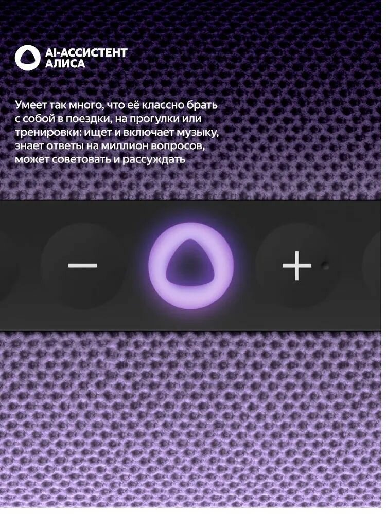 Дизайн, созвучный с природой Благодаря высокому классу защиты IP67 Яндекс Станция Стрит устойчива к пыли и воде, а ткань приглушённых цветов не выгорает на солнце. Если в зарядный разъём попадёт вода, Алиса сама напомнит просушить колонку.