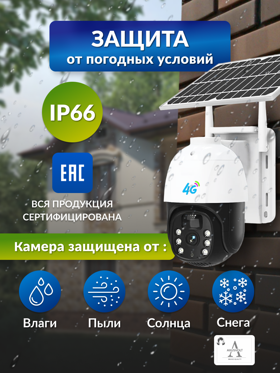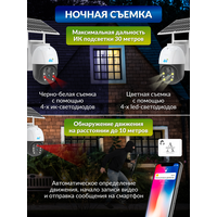 Купить Умная поворотная 4G-камера на солнечной батарее, работает от сим-карты, с микрофоном и ночным видением с доставкой по всей России.