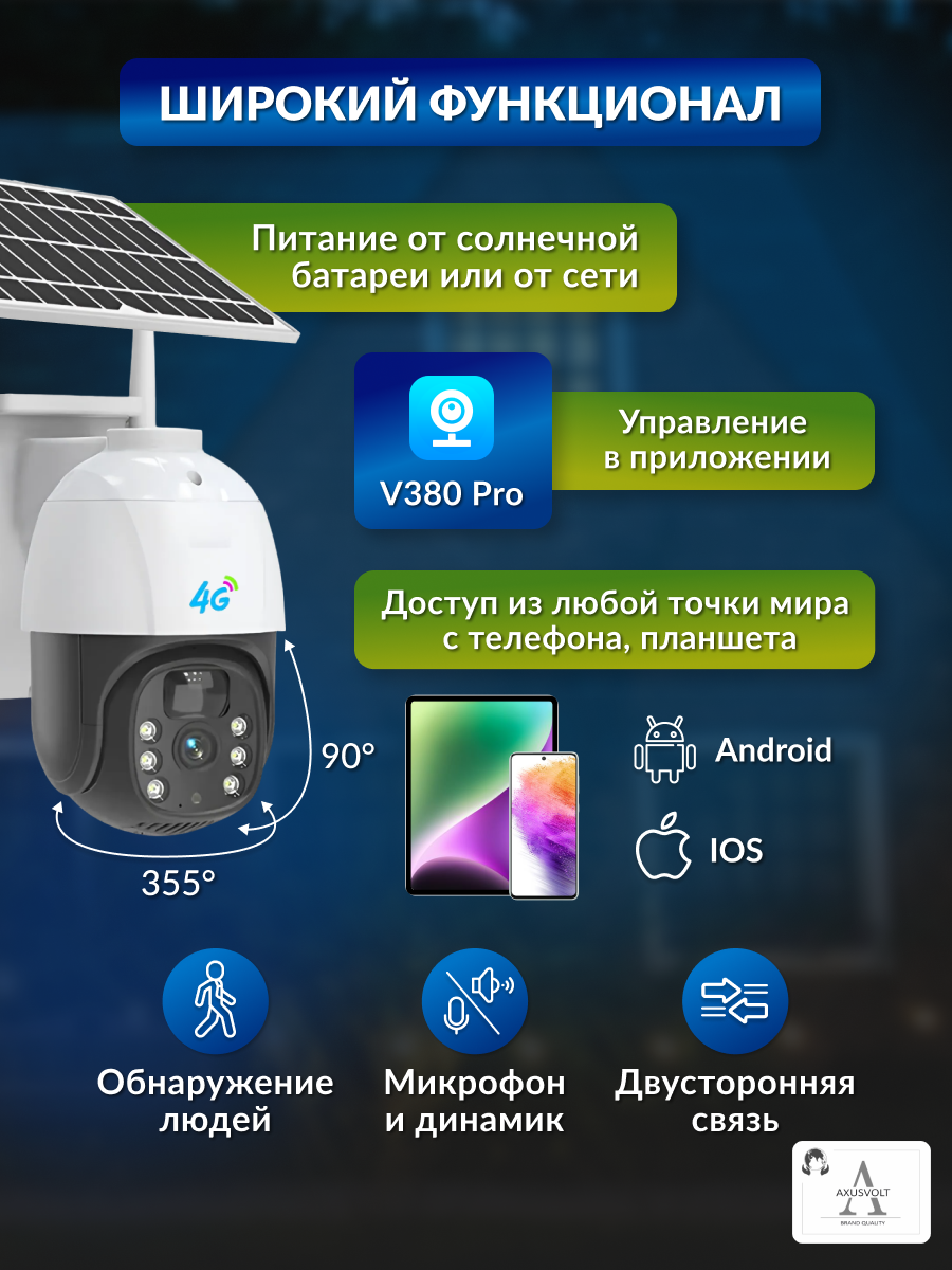 Умная поворотная 4G-камера на солнечной батарее, работает от сим-карты, с микрофоном и ночным видением: сравнение цен, характеристики, фото, актуальное наличие и цены.