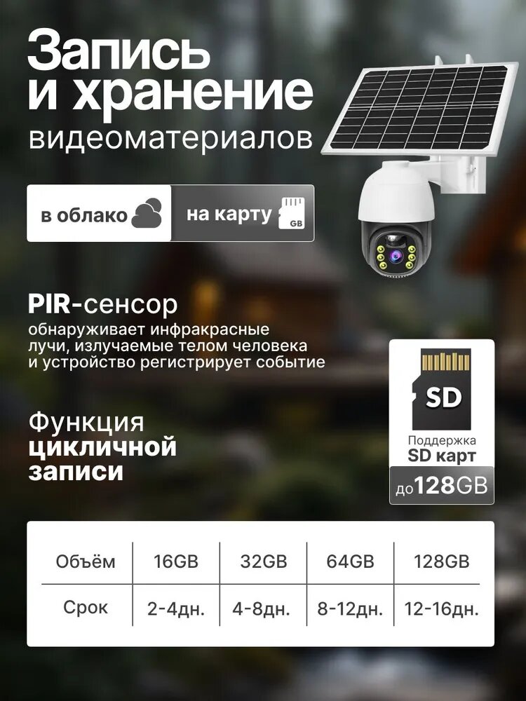Эта поворотная камера на солнечных батареях обеспечивает безопасность вашего дома, офиса или любого другого помещения. Благодаря встроенной солнечной панели и аккумулятору,
