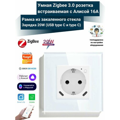 Купить Умная розетка встраиваемая с Алисой 16А Tuya Zigbee 3.0 с (USB type C и type C) быстрая USB зарядка 20W с доставкой по всей России. Умная розетка встраиваемая с Алисой 16А Tuya Zigbee 3.0 с (USB type C и type C) быстрая USB зарядка 20W: сравнение цен, характеристики, фото, актуальное наличие и цены.