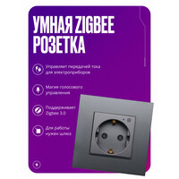 • Умная cтеклянная встраиваемая розетка серого цвета с голосовым управлением для Алисы от Яндекса, работающая на протоколе связи Zigbee.