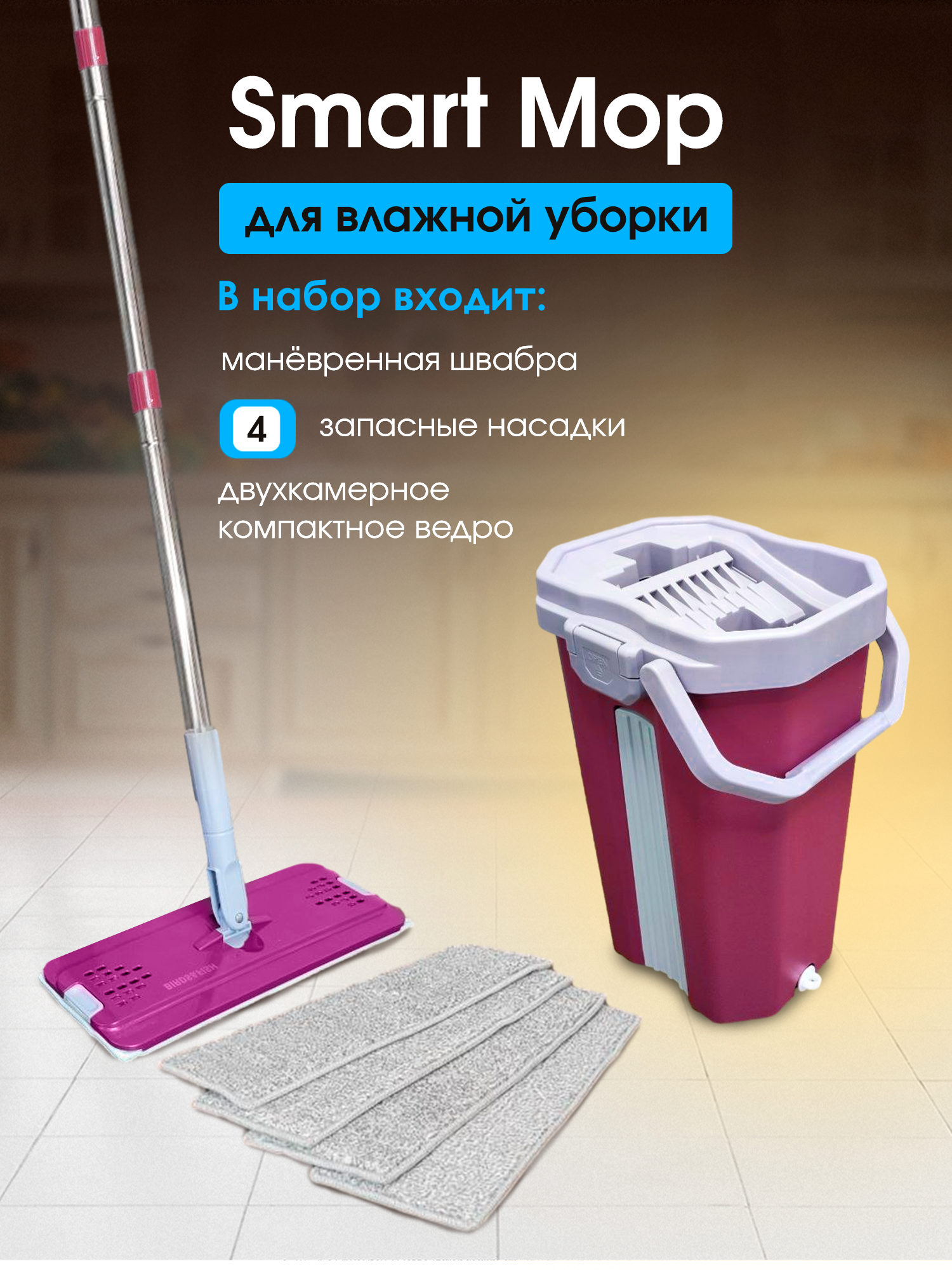 Умная швабра с отжимом и ведром для мытья пола. Сменные насадки для швабры 4 шт. Ведро 16 литров: сравнение цен, характеристики, фото, актуальное наличие и цены.
