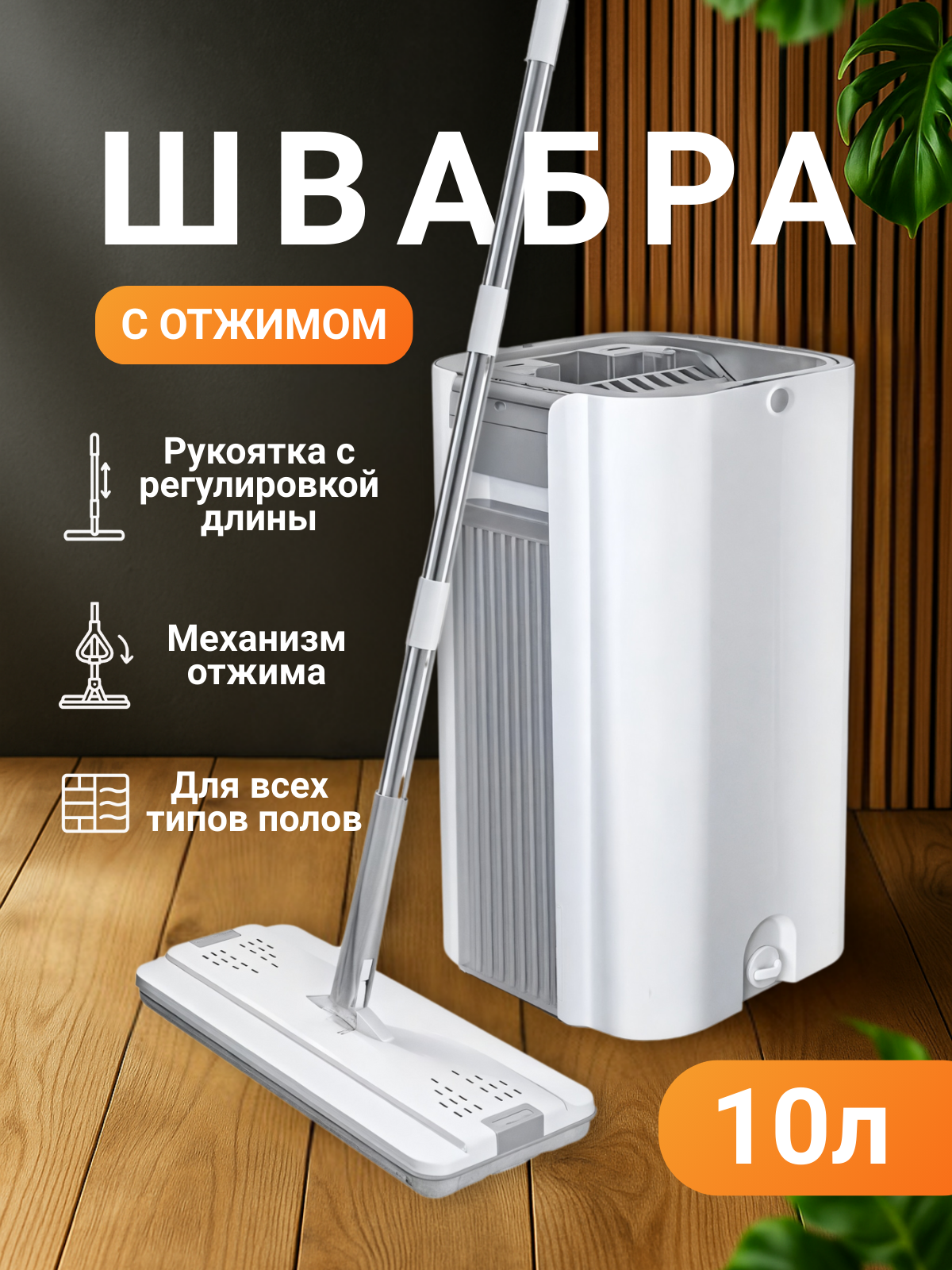 Умная швабра с отжимом и ведром для мытья полов и окон — 2 микрофибры в комплекте,10л: сравнение цен, характеристики, фото, актуальное наличие и цены.