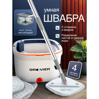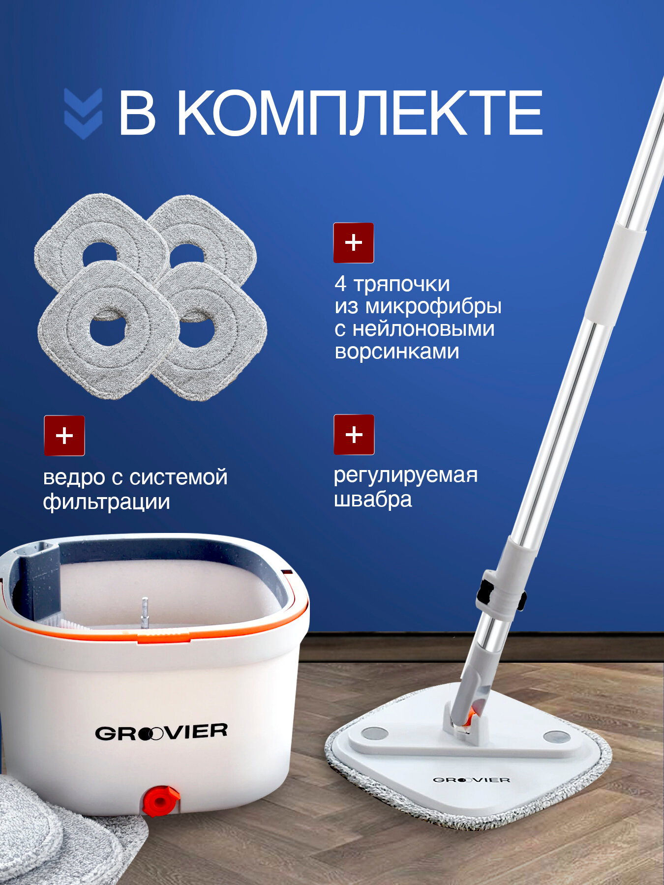 Купить Умная швабра с отжимом и ведром для мытья полов телескопическая 4 насадки Groovier с доставкой по всей России.