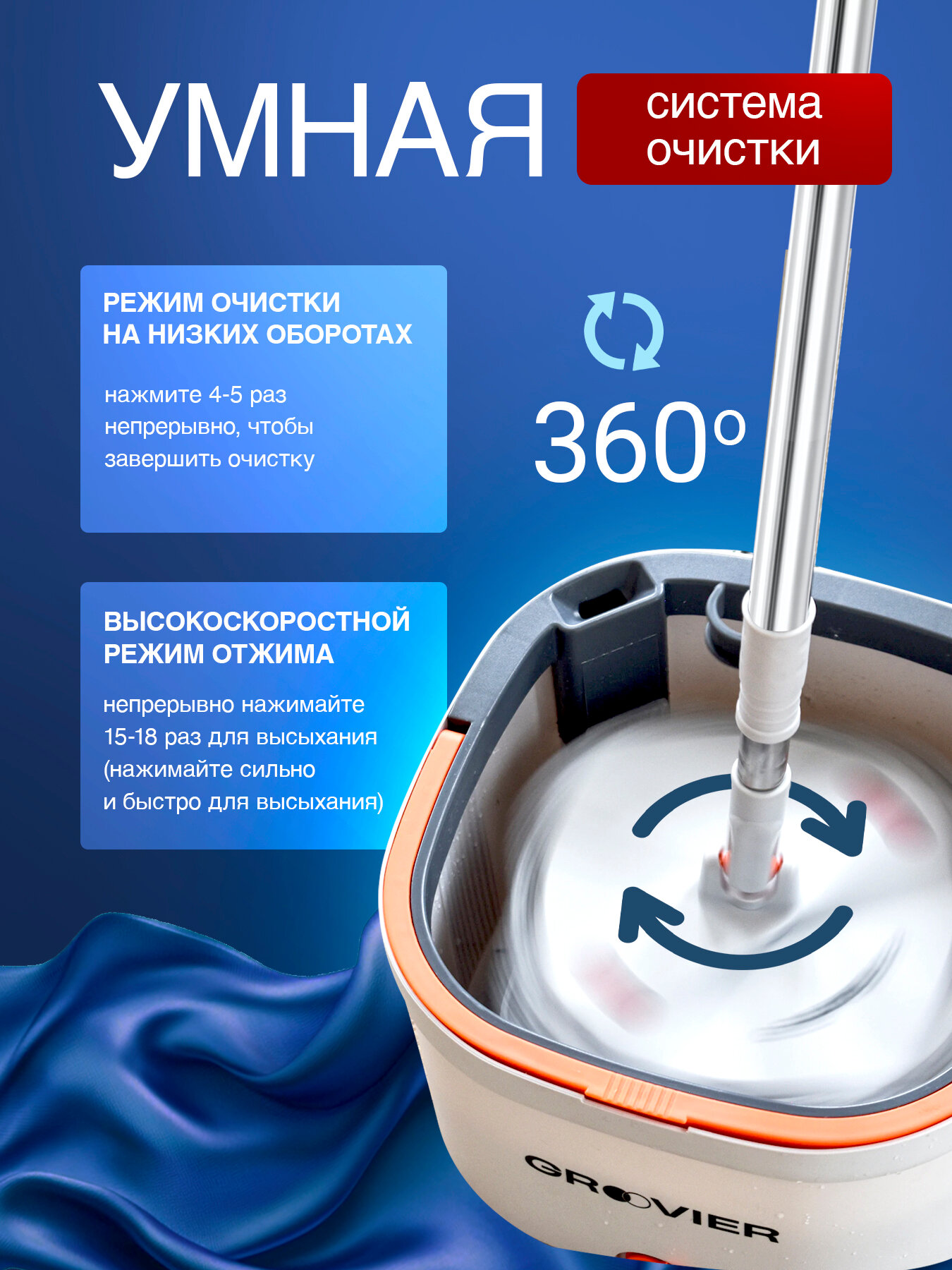Умная швабра с отжимом и ведром для мытья полов телескопическая 4 насадки Groovier: сравнение цен, характеристики, фото, актуальное наличие и цены.