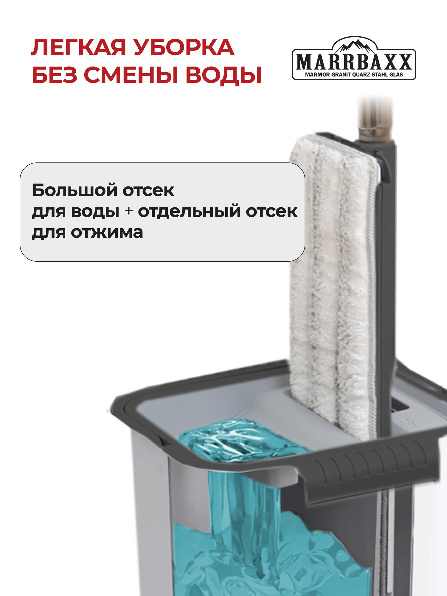 Умная швабра с отжимом и ведром MARRBAXX Premium mop, 4 насадки-флаундера, ведро 12л. Цвет бежево-серый: сравнение цен, характеристики, фото, актуальное наличие и цены.