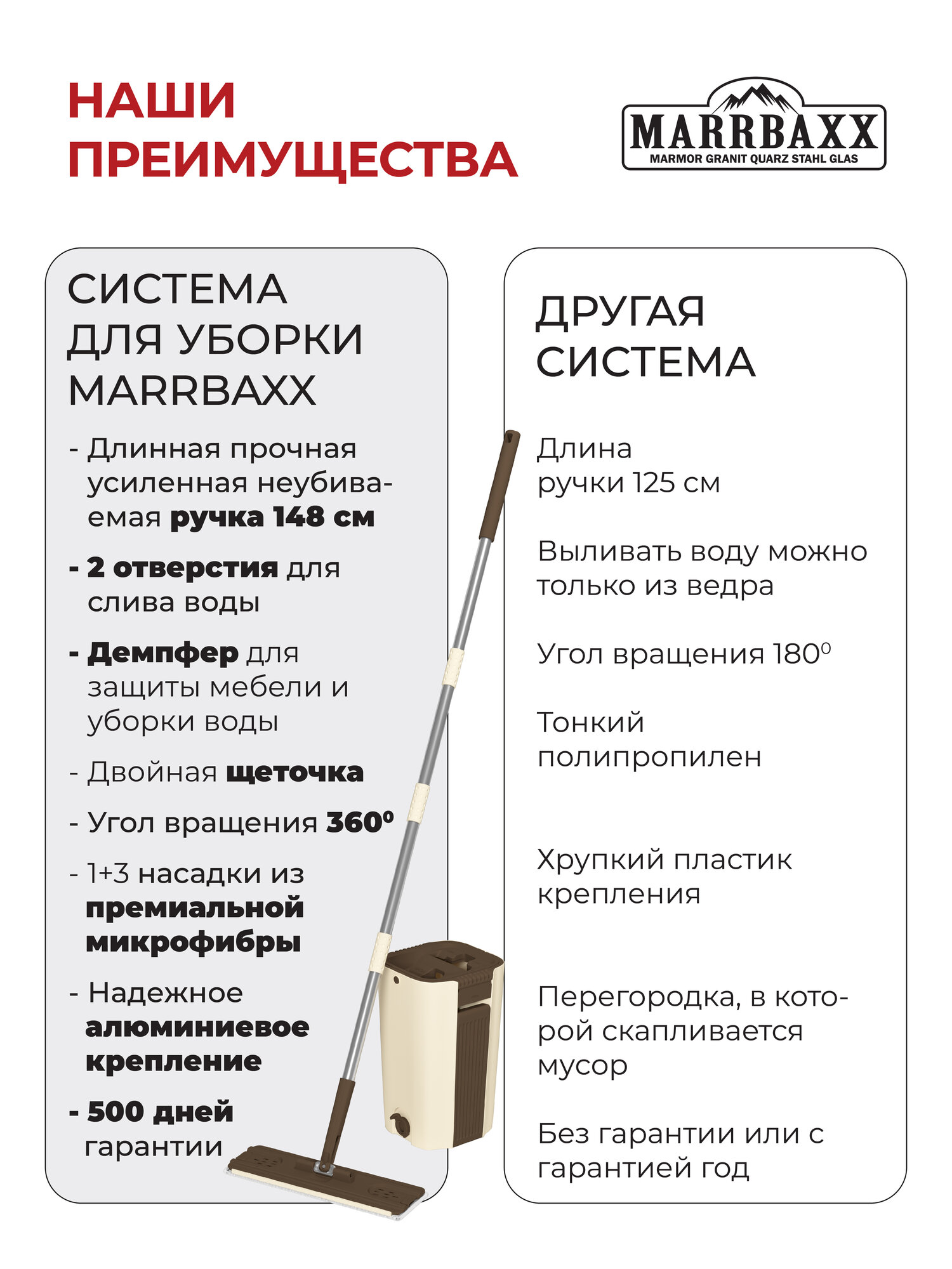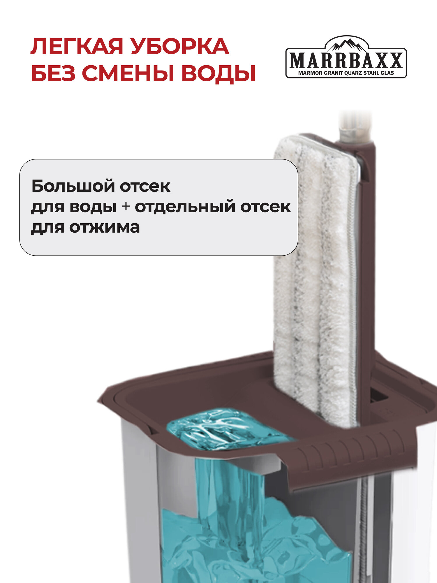 Умная швабра с отжимом и ведром MARRBAXX SMART MOP, 4 насадки-флаундера, ведро 12л. Цвет бежево-кофейный: сравнение цен, характеристики, фото, актуальное наличие и цены.