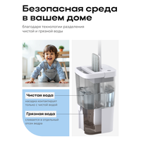 Умная швабра с отжимом и ведром Zetter Aqua Split Auto, с разделением воды, на батарейках, цвет белый: сравнение цен, характеристики, фото, актуальное наличие и цены.