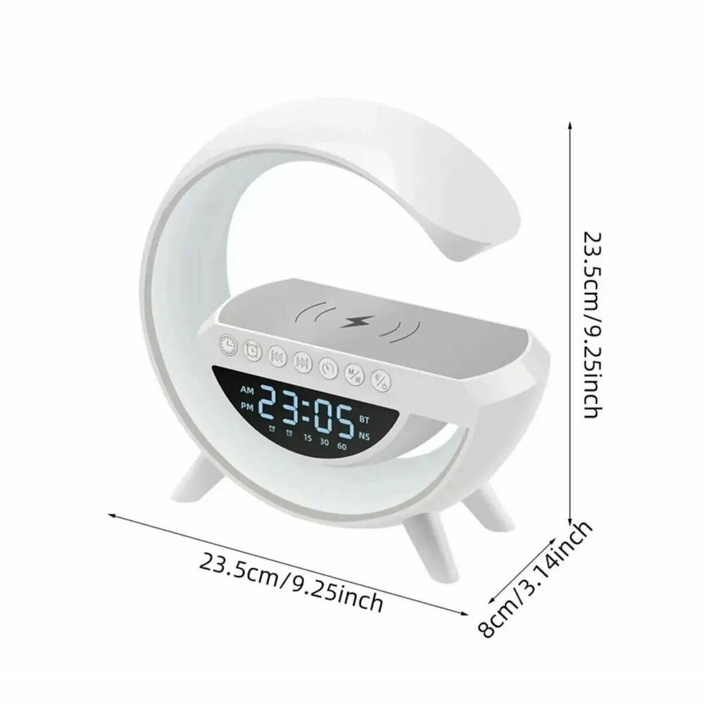 Купить Умная смарт лампа с беспроводной зарядкой смартфонов, Bluetoot, aux, usb, microSD колонкой, часы, будильник, таймер с доставкой по всей России.