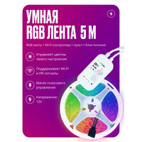• Умная музыкальная светодиодная разноцветная RGB лента 60 светодиодов на метр, полностью работающая с Алисой! Лента очень яркая и качественная, а главное, что у неё 60 больших светодиодов на метр и целых 3 разных музыкальных режима!