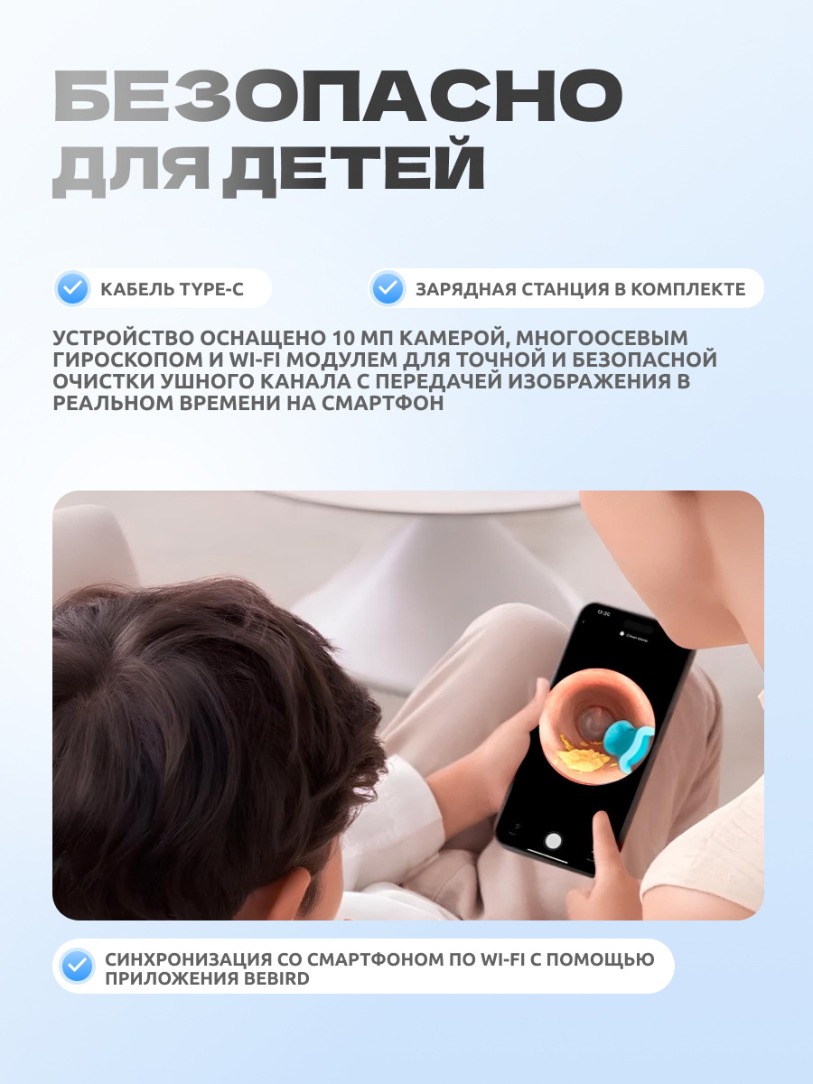 Особенностью устройства является его синхронизация со смартфоном. Это позволяет пользователю контролировать процесс очистки и получать информацию о состоянии ушных каналов в режиме реального времени.