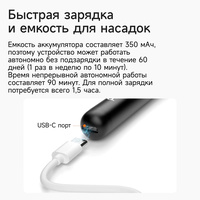 | Комплектация | прибор; зарядная станция с отсеком для хранения насадок; usb-кабель; 3 массажных щетки; 3 двусторонних палочки для очистки; 10 насадок; инструкция по применению |