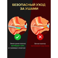 | Комплектация | Ушная палочка, USB кабель, 4 сменных насадки, 7 дополнительных инструментов для чистки ушей, щетка для очистки, инструкция |