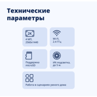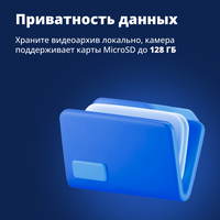 Наблюдайте онлайн в любое время, а видеоархив сохраняйте на microSD. С приложением Eltex Home управлять Wi-Fi камерой просто: поворачивайте и смотрите записи в удобном плеере. Угол поворота до 350° и угол наклона до 170° для нужных ракурсов, а разрешение 2560 x 1440 для детальной картинки. Благодаря ИК-подсветке трансляцию можно вести даже в темноте: объекты различимы на расстоянии до 5 метров.