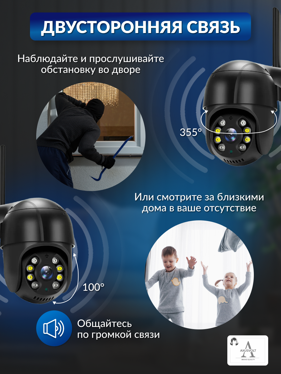 Купить Умная WI-FI камера видеонаблюдения, AXUSVOLT, 5 мп, iCSEE, ночное видение, датчик движения, микрофон, динамик с доставкой по всей России.