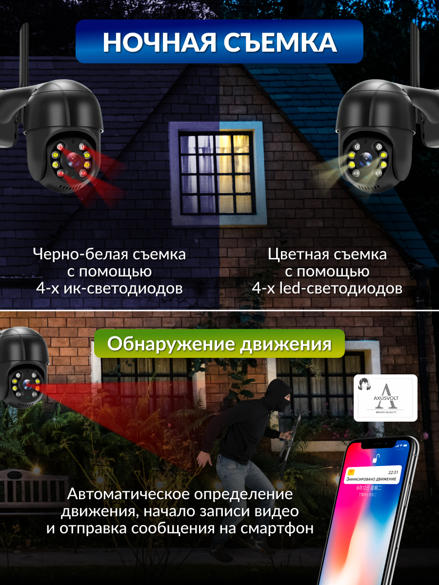 Умная WI-FI камера видеонаблюдения, AXUSVOLT, 5 мп, iCSEE, ночное видение, датчик движения, микрофон, динамик: сравнение цен, характеристики, фото, актуальное наличие и цены.