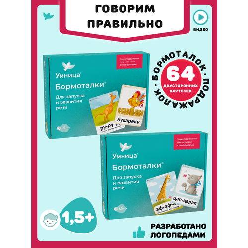 "Умница" представляет обучающий набор "Бормоталки 2в1" для детей от 1,5 до 4 лет. Этот набор поможет вашему ребенку улучшить произношение сложных звуков и избежать логопедических проблем в будущем.