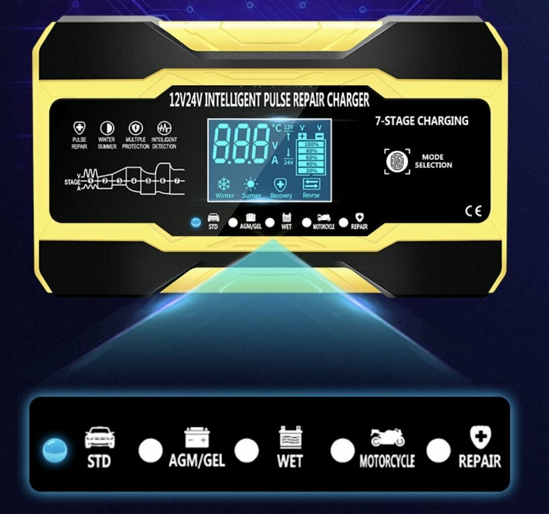 Умное автомобильное зарядное устройство RJTIANYE, 12В, 10A 7-ступенчатое полностью автоматическое.: сравнение цен, характеристики, фото, актуальное наличие и цены.