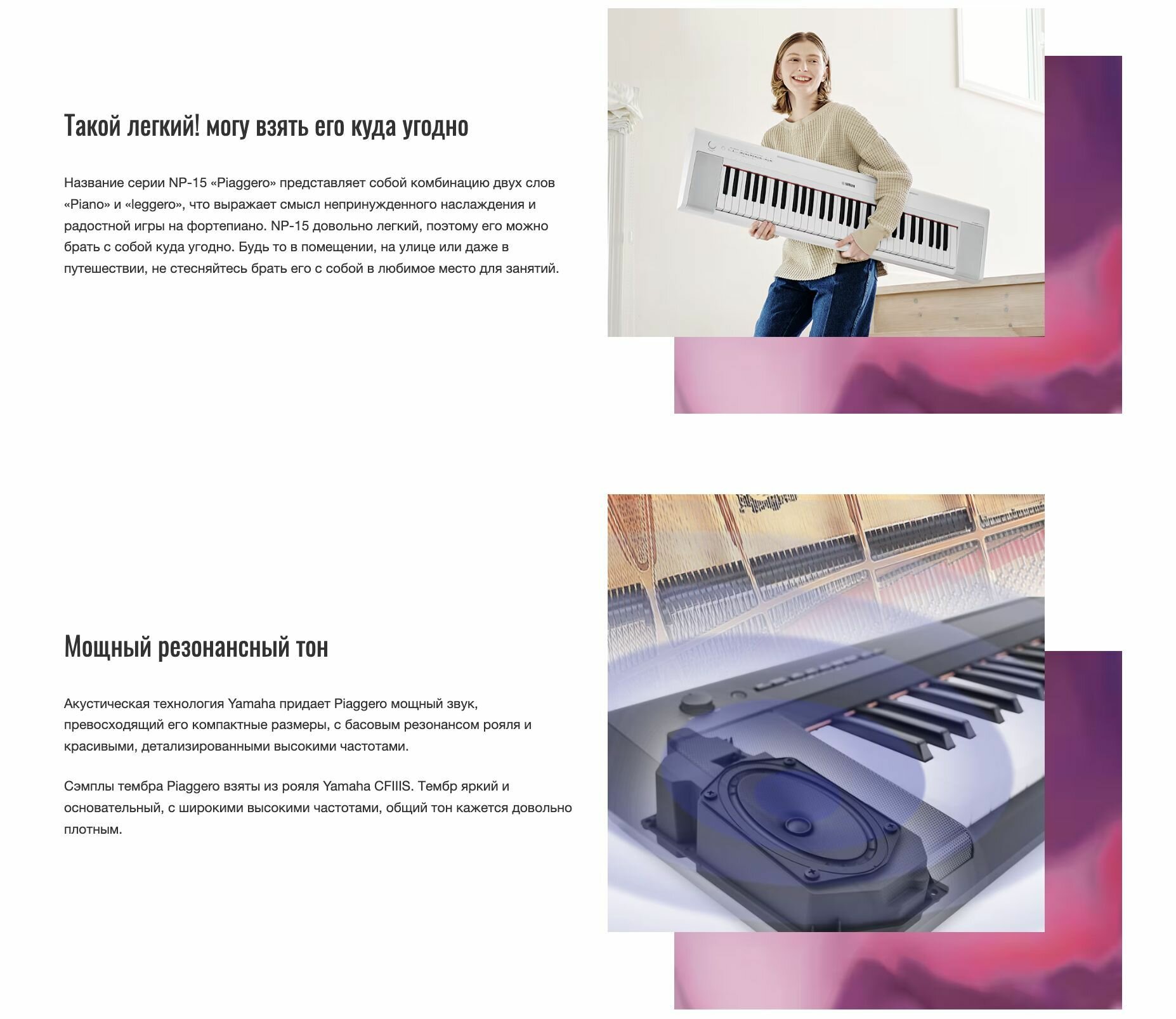 Умное электронное пианино Yamaha NP-15 61 клавиш тяжелая молоточковая, Белый: сравнение цен, характеристики, фото, актуальное наличие и цены.