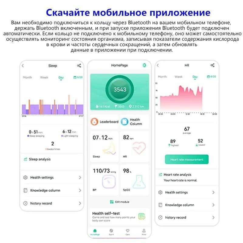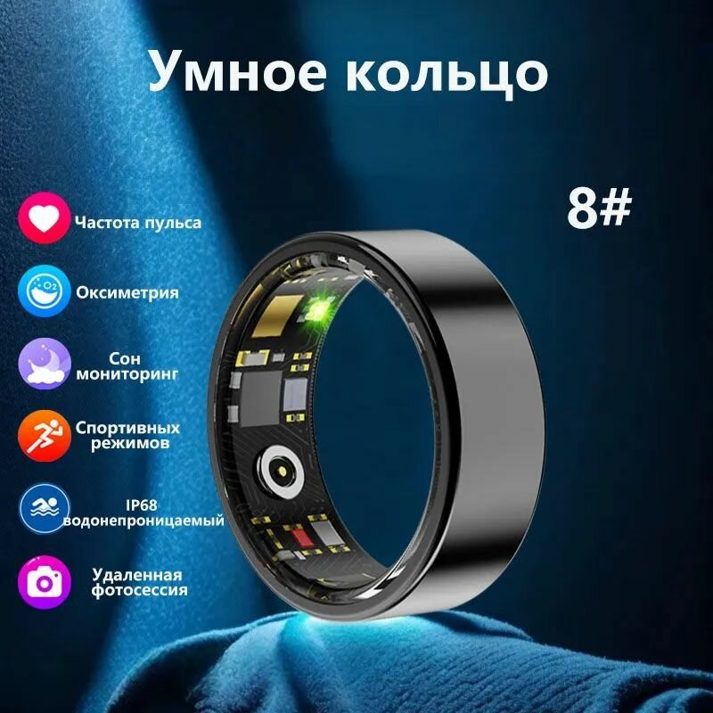 Умное смарт кольцо, пульсометр спортивный, фитнес браслет на палец, мониторинг здоровья, женский и мужской с IOS и Android, Bluetooth, IP68 водонепроницаемый