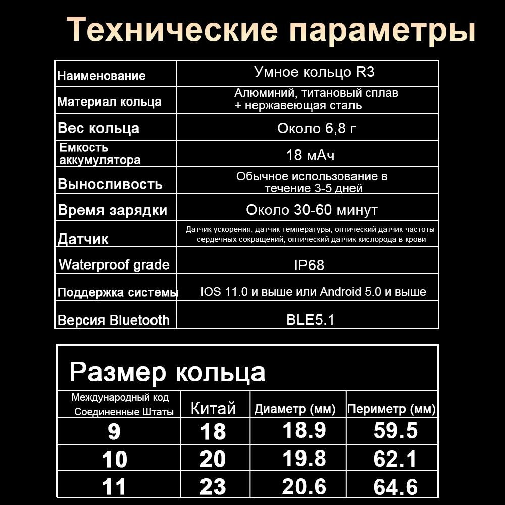 Умное кольцо, мониторинг состояния здоровья отслеживающий уровень кислорода в крови, кровяное давление, частоту сердечных сокращений, шагомер и т. д, приложение поддерживает русский язык