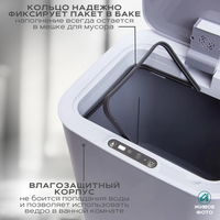 | Комплектация | Умное ведро-1шт, крышка-1шт, кольцо для фиксации пакетов-1шт, держатель для мусорных пакетов-1шт. |