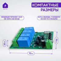 На контроллер подается питание 7-32v или 5v через вход Micro USB, а дальше есть 4 выхода, у каждого из них есть 3 разъема. К ним можно подключать как устройства с напряжением 220в (чайник, розетку, торшер, радиатор, кормушку для рыбок, колонки, подсветку, гирлянду и тд), так и устройства с напряжением 12/24v - компьютер, маленький холодильник (ну а вдруг), и все что вашей душе угодно! Создавайте комплект умного дома!