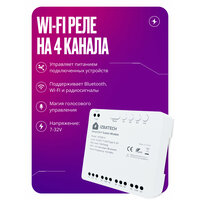 Умное реле WIFI+RF+Bluetooth, контроллер с корпусом на 4 канала для умного дома, 7-32V, 10А: сравнение цен, характеристики, фото, актуальное наличие и цены.
