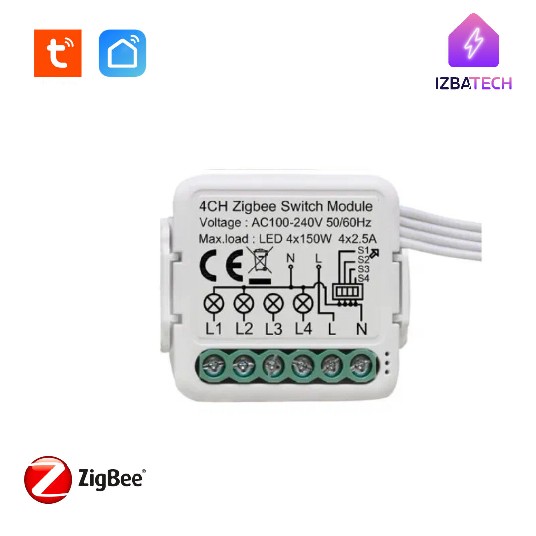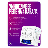 Умное реле Zigbee Tuya 3.0, контроллер на 4 канала, с нулем для умного дома — современное решение для автоматизации вашего дома. Это компактное устройство открывает возможности по управлению освещением и техникой дистанционно через голосовые команды.