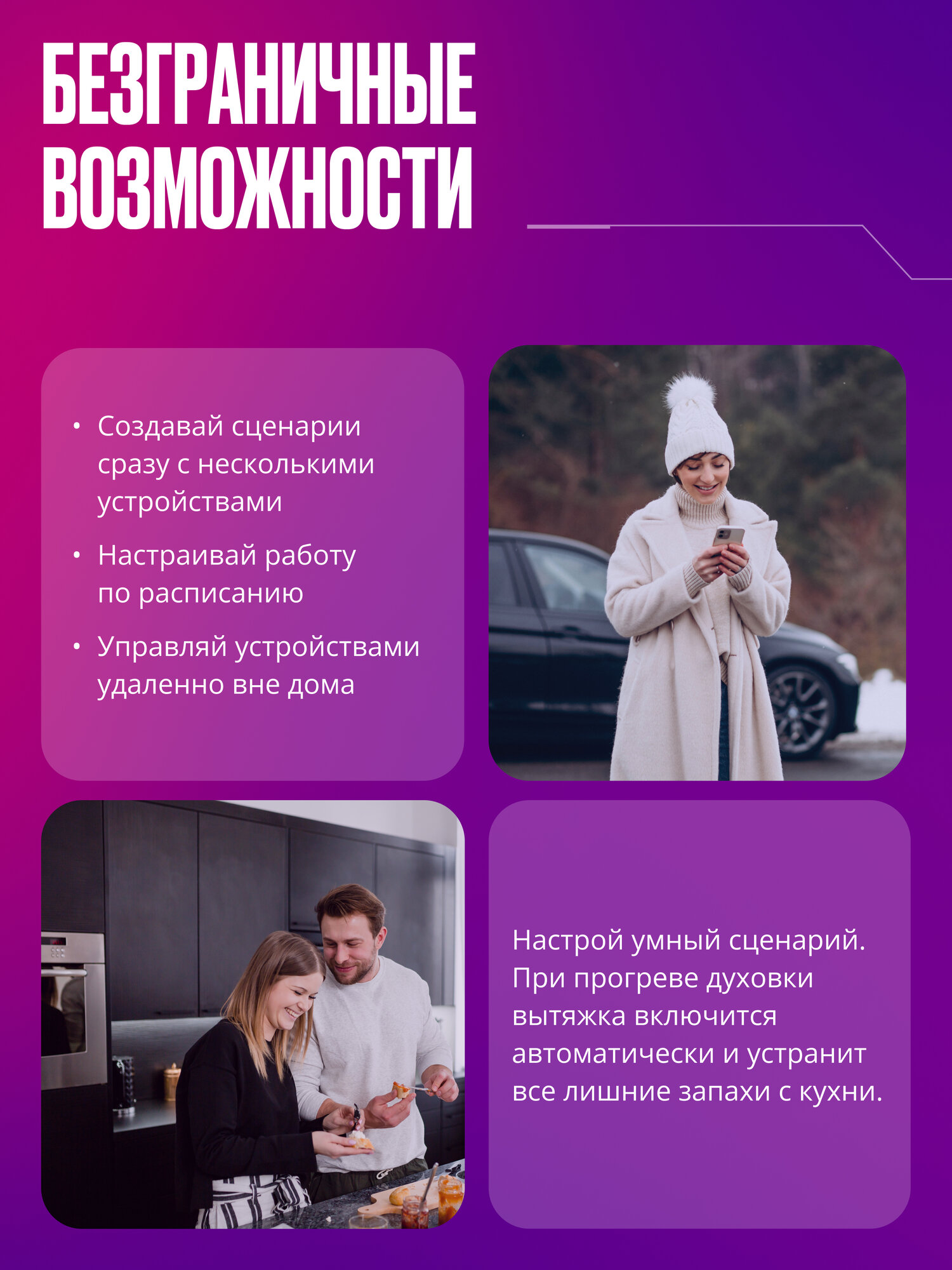| Экосистема Умного дома | Amazon Alexa, DIGMA SmartLife, Google Home, Samsung SmartThings, Smart Life, Tuya Smart, eWeLink, Умный дом Яндекса |