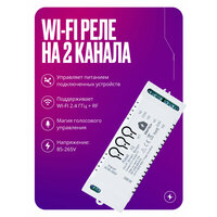 Купить Умное реле Wi-Fi+RF на 2 канала, контроллер, 85-265V, 10А, с сухим контактом, в корпусе с доставкой по всей России.