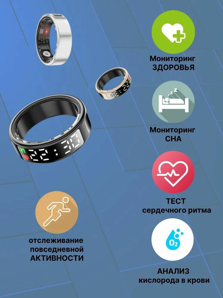 Купить Умное смарт кольцо с дисплеем/фитнес кольцо Bluetooth шагомер, отслеживание сна, пульса размер 12 черное с доставкой по всей России.