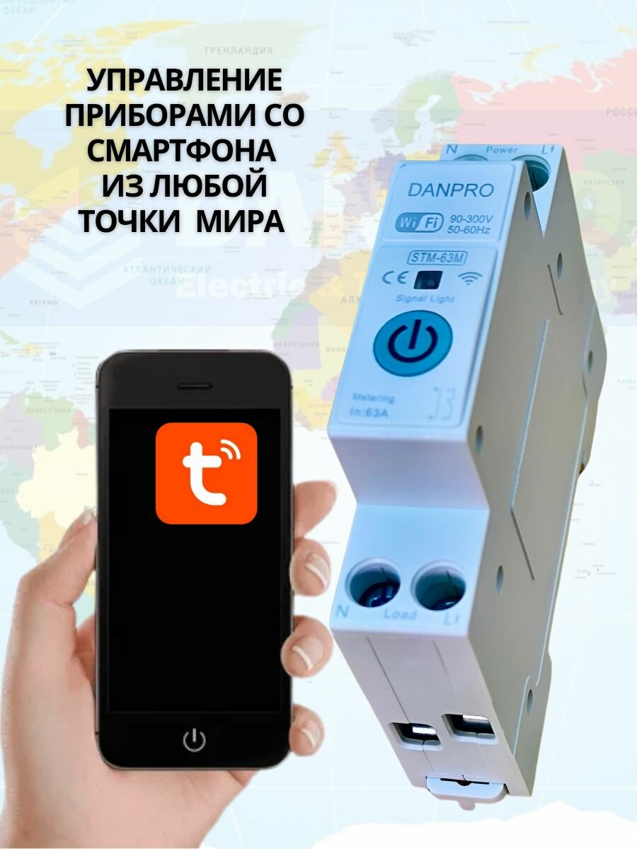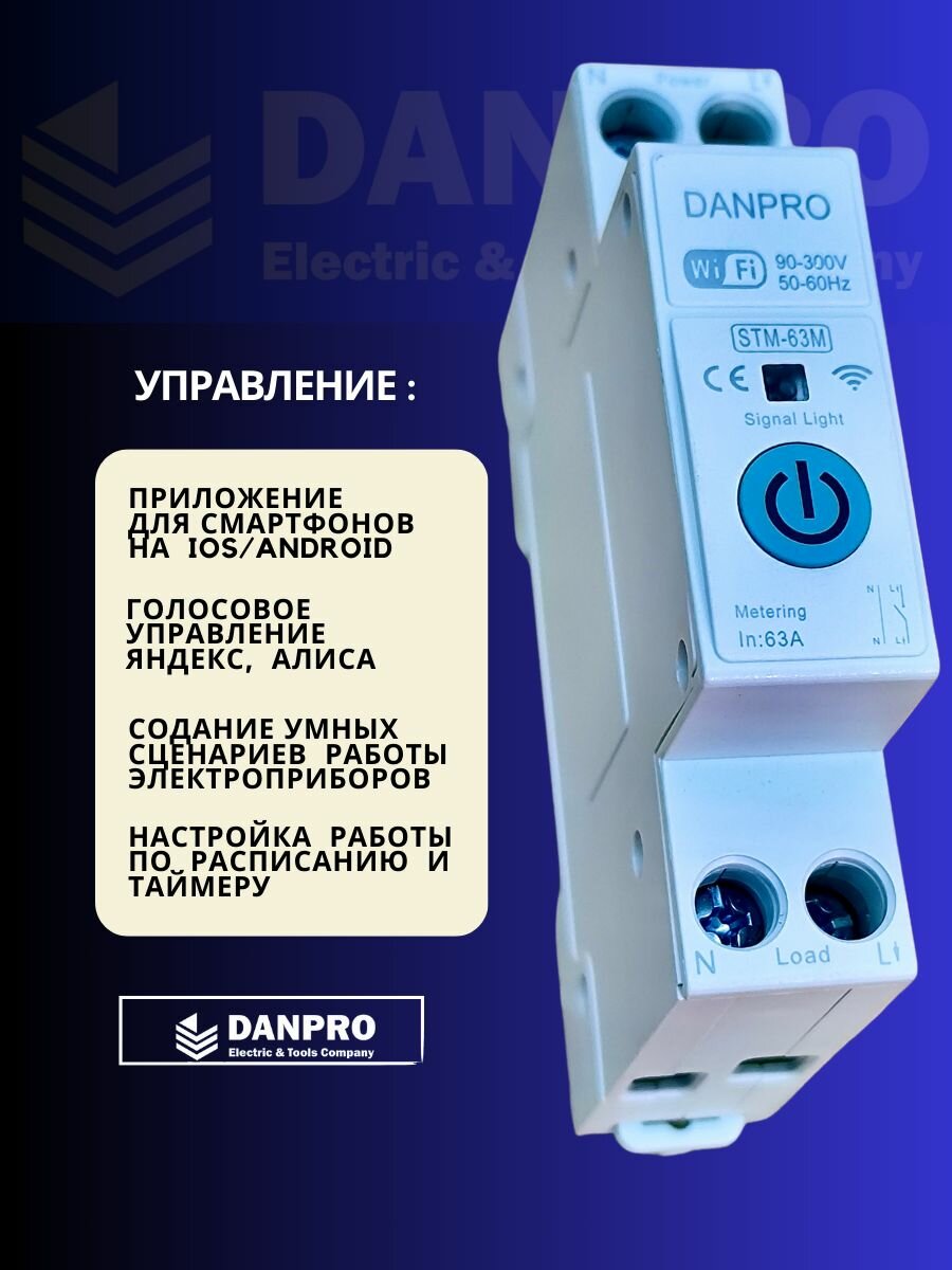 Умное Wi-Fi реле STM-63M (STM-M) для ручного и, прежде всего, дистанционного включения-отключения нагрузки, контроля напряжения, тока и потребляемой мощности через приложения “Умный дом” - Tuya Smart, Smart Life, DIGMA SmartLife и др. Подключается к сети интернет через Wi-Fi и позволяет управлять питанием ваших устройств в любое время из любой точки мира. Поддерживает голосовое управление. Позволяет организовать защиту от высокого и низкого напряжения, защиту по току от 1 до 63А, защиту по мощности от 1 до 13 кВт, включение и выключение нагрузки по расписанию. Устанавливается на DIN-рейку. Используется в однофазной сети переменного тока 220/230В 50/60Гц. Коммутируемый ток нагрузки до 63А (63 А кратковременно, длительно рекомендовано не более 40 А). Для защиты реле от короткого замыкания, установите автоматический выключатель типа С, с номинальным током не более 40А. Короткая инструкция по подключению к приложению: 1) Скачайте приложение Tuya Smart, Smart Life или Digma на Android или IOS и залогиньтесь; 2) Проверьте, что вы подключены через сеть WIFI 2.4 ГГц (через 5 ГГц не подключится); 3) Включите Bluetooth на телефоне; 4) Нажмите и удерживайте кнопку выключателя 5-8 секунд, пока индикатор не начнет мигать; 5) Сначала попробуйте добавить через "автоматическое сканирование", если не получится, то через ручное; 6) Введите пароль от своего WIFI -> Готоводом” - Tuya Smart, Smart Life, DIGMA SmartLife и др. Подключается к сети интернет через Wi-Fi и позволяет управлять питанием ваших устройств в любое время из любой точки мира. Поддерживает голосовое управление. Позволяет организовать защиту от высокого и низкого напряжения, защиту по току от 1 до 63А, защиту по мощности от 1 до 13 кВт, включение и выключение нагрузки по расписанию. Устанавливается на DIN-рейку. Используется в однофазной сети переменного тока 220/230В 50/60Гц. Коммутируемый ток нагрузки до 63А (63 А кратковременно, длительно рекомендовано не более 40 А). Для защиты реле от короткого замыкания, установите автоматический выключатель типа С, с номинальным током не более 40А. Короткая инструкция по подключению к приложению: 1) Скачайте приложение Tuya Smart, Smart Life или Digma на Android или IOS и залогиньтесь; 2) Проверьте, что вы подключены через сеть WIFI 2.4 ГГц (через 5 ГГц не подключится); 3) Включите Bluetooth на телефоне; 4) Нажмите и удерживайте кнопку выключателя 5-8 секунд, пока индикатор не начнет мигать; 5) Сначала попробуйте добавить через "автоматическое сканирование", если не получится, то через ручное; 6) Введите пароль от своего WIFI -> Готово