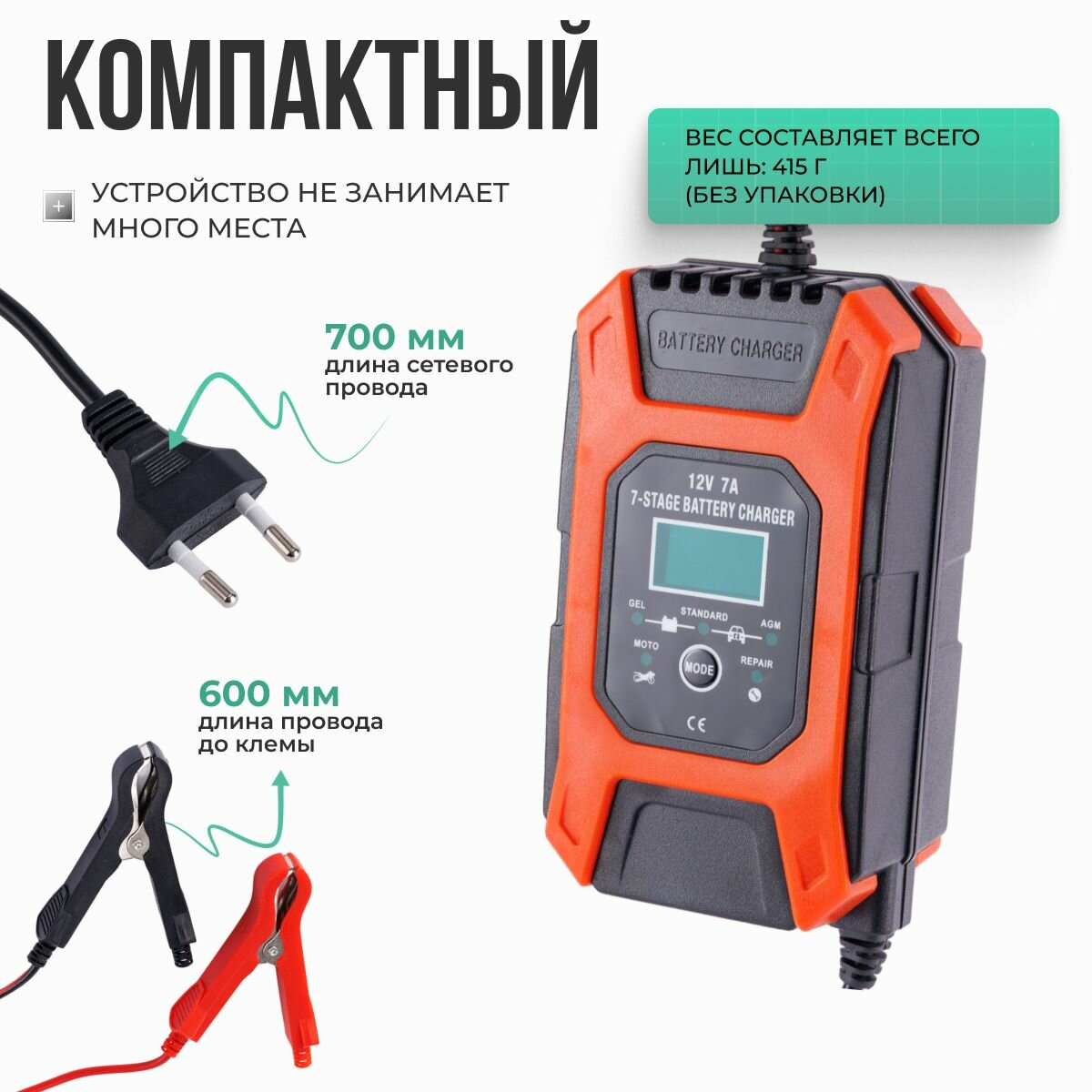 - 7-ступенчатый процесс зарядки, управляемый микропроцессором, обеспечивает безопасную и эффективную зарядку аккумулятора;