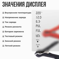 - ЖК-дисплей с постоянным отображением напряжения, тока, температуры и т. д.