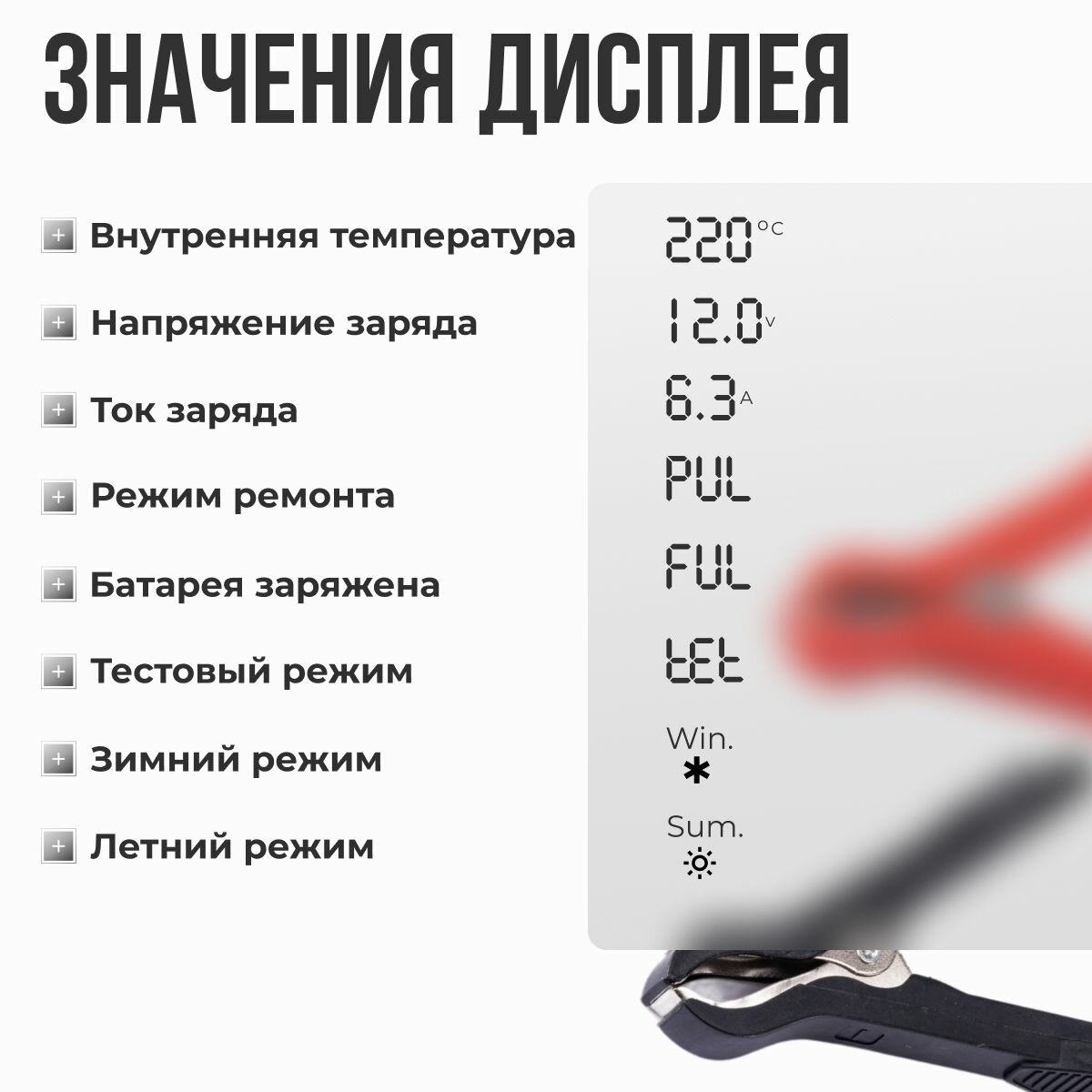 - GEL, Standard, AGM, MOTO — тип батареи можно выбрать;