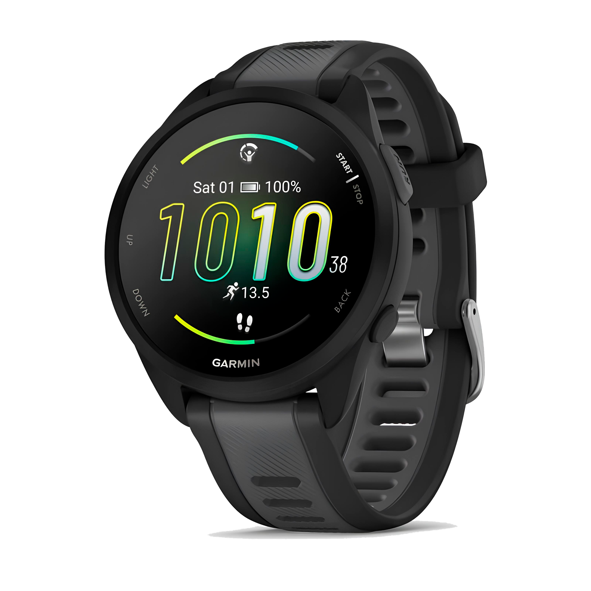 Тренируйтесь с блеском Вы не просто бегаете. Вы делаете гораздо больше. Именно поэтому вам нужна модель Forerunner® 165 – специализированные беговые смарт-часы с GPS, персонализированными адаптивными планами тренировок и ярким дисплеем для четкого отображения ваших успехов. Цветной дисплей AMOLED 1,2” Период работы от батареи до 11 дней в режиме смарт-часов Улучшенные показатели тренировок и рекомендации по восстановлению Более 25 встроенных спортивных приложений с GPS и для занятий в помещении Сенсорный экран и кнопки Встроенный GPS-приемник для расчета данных времени, темпа и скорости Вам это понравится Темп, расстояние, частота пульса Эти простые в использовании беговые смарт-часы с GPS предлагают все необходимые функции, с помощью которых вы сможете поднять ваши беговые тренировки на новый уровень. Устройство выдает координаты GPS, темп, расстояние и частоту пульса, измеренную на запястье. Ежедневные рекомендованные тренировки Используйте планы тренировок, разработанные специально для вас. Эти планы корректируются после каждой пробежки в зависимости от ваших результатов, состояния восстановления и предстоящих соревнований, записанных в календаре приложения Garmin ConnectTM на смартфоне. Тренер Гармин Используйте бесплатные адаптивные планы тренировок от экспертных тренеров для дистанции 5 км, 10 км и полумарафон. Эта функция поможет вам справляться с новыми задачами. Адаптивная подготовка к соревнованиям Для успешной подготовки к соревнованиям устройство предлагает советы по тренировкам, персонализированные ежедневные планы тренировок и прогнозируемое время, которое вы сможете показать на соревнованиях. Данные рассчитываются на основе информации, введенной в приложение Garmin Connect. Утренний отчет После пробуждения часы выдают краткий обзор показателей вашего сна1 и тренировок, а также состояние вариабельности частоты пульса и прогноз погоды. Вы можете настроить отчет для просмотра только тех данных, которые вас интересуют. Эффект тренировки Эффект тренировки показывает влияние тренировочного процесса на вашу физическую форму, а также позволяет оценить главное преимущество тренировочных пробежек и занятий спортом. Не сомневайтесь – записывайтесь на участие в соревнованиях Планирование Долгий период работы от батареи Устройство обеспечивает до 11 дней работы в режиме смарт-часов и до 19 часов и режиме GPS. Таким образом, вы сможете получить полную картину вашего здоровья и занятий спортом. Время восстановления Узнайте, как долго вам следует восстанавливаться перед следующей интенсивной тренировкой. Эти данные рассчитываются на основе показателей последней тренировки, а также учитывают общий стресс, сон и общую активность в течение дня. Наблюдение за сном и баллы сна Баллы сна позволяют вам оценить степень восстановления организма во время ночного отдыха. Кроме того, вы можете просматривать фазы сна и получать детальные рекомендации по улучшению качества сна. Монитор энергии Body Battery Отслеживайте уровни энергии вашего организма и определяйте лучшее время для нагрузки и отдыха. Узнайте как ночной и дневной сон, физическая нагрузка и стресс влияют на ваш уровень энергии. Дистанции Создавайте новые дистанции или используйте существующие дистанции в приложении Garmin Connect и на платформах сторонних разработчиков. Найденные диста
