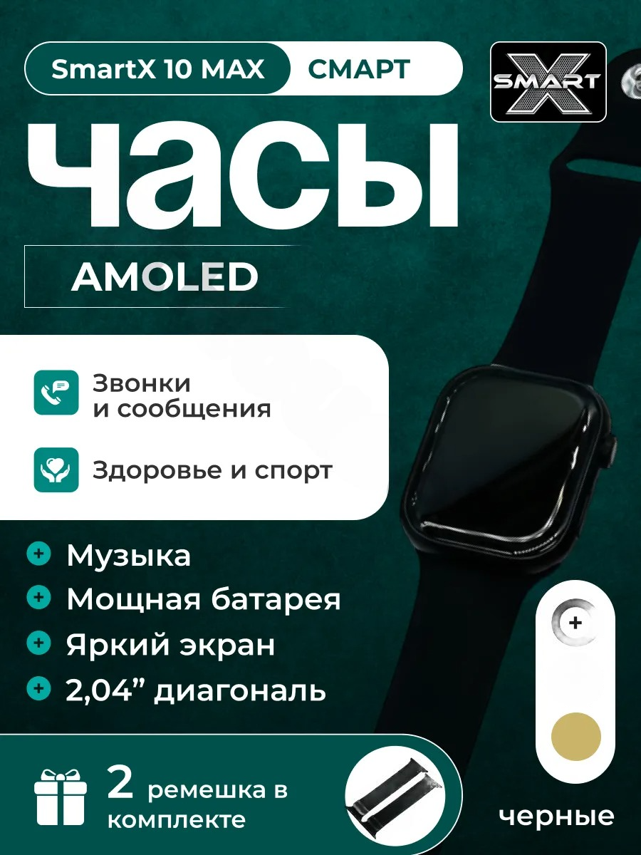 Купить Умные часы 10 MAX SmartX, 2.04 Amoled-экран, 2 ремешка, Черные с доставкой по всей России. Умные часы 10 MAX SmartX, 2.04 Amoled-экран, 2 ремешка, Черные: сравнение цен, характеристики, фото, актуальное наличие и цены.