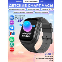Умные часы для детей Aimoto Dream с Марусей Телеграмм Ватсап смарт часы детские с видеозвонком, мощной батареей 800 мАч, Android 8.1, GPS геолокацией, черный