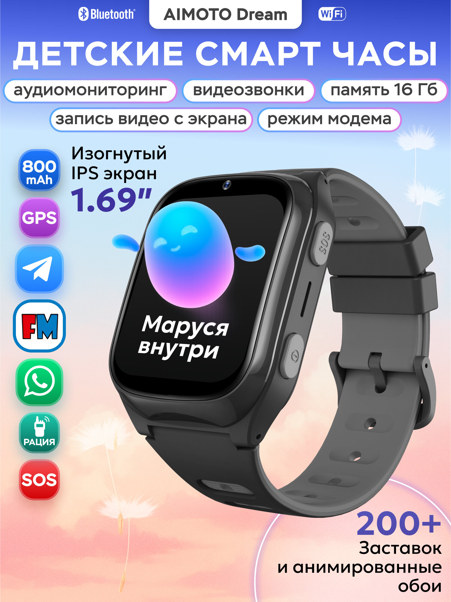 Умные часы для детей Aimoto Dream с Марусей Телеграмм Ватсап смарт часы детские с видеозвонком, мощной батареей 800 мАч, Android 8.1, GPS геолокацией, черный: сравнение цен, характеристики, фото, актуальное наличие и цены.