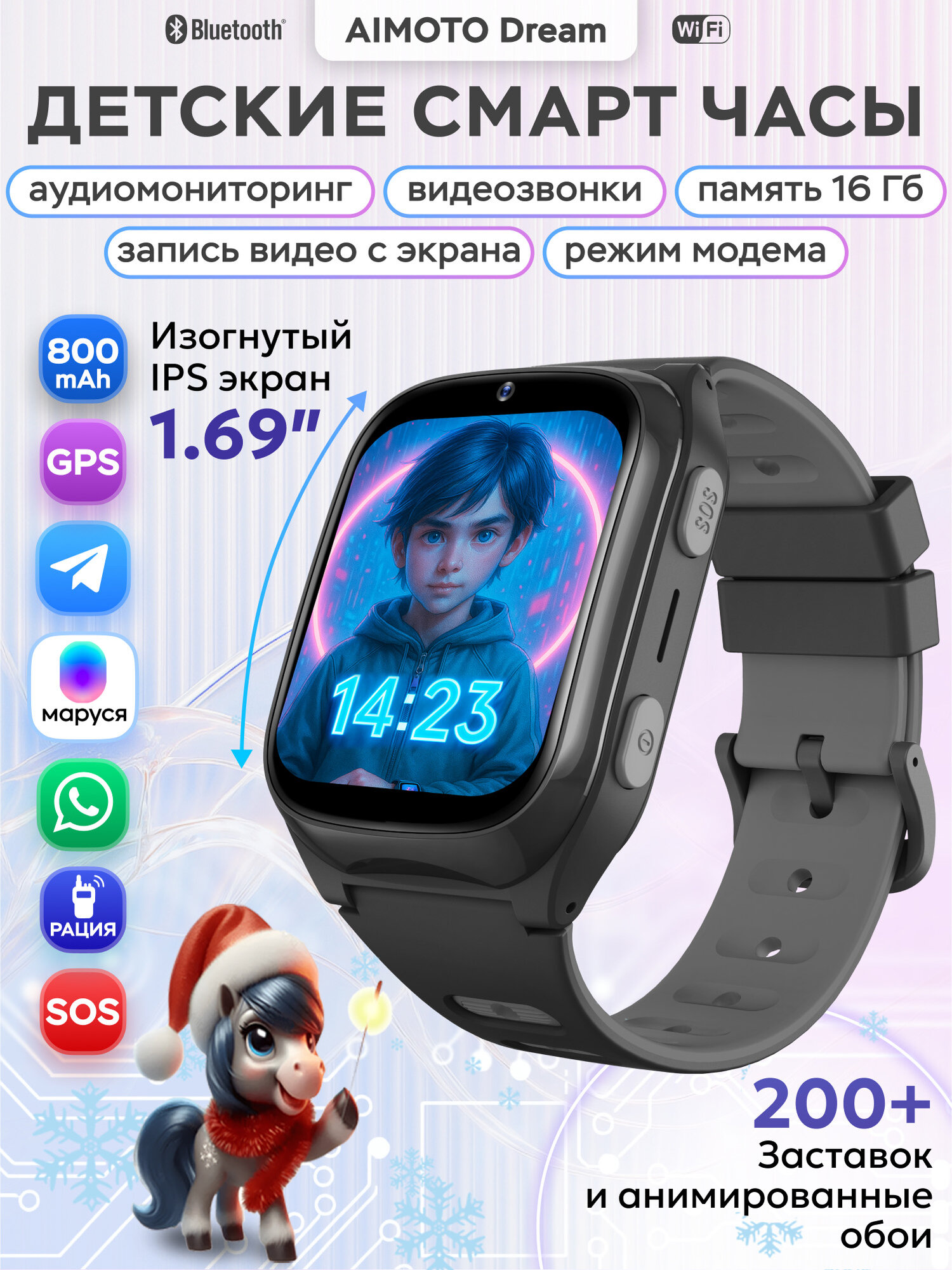 | Особенности | воспроизведение аудио, магнитная зарядка, поиск часов, фонарик |